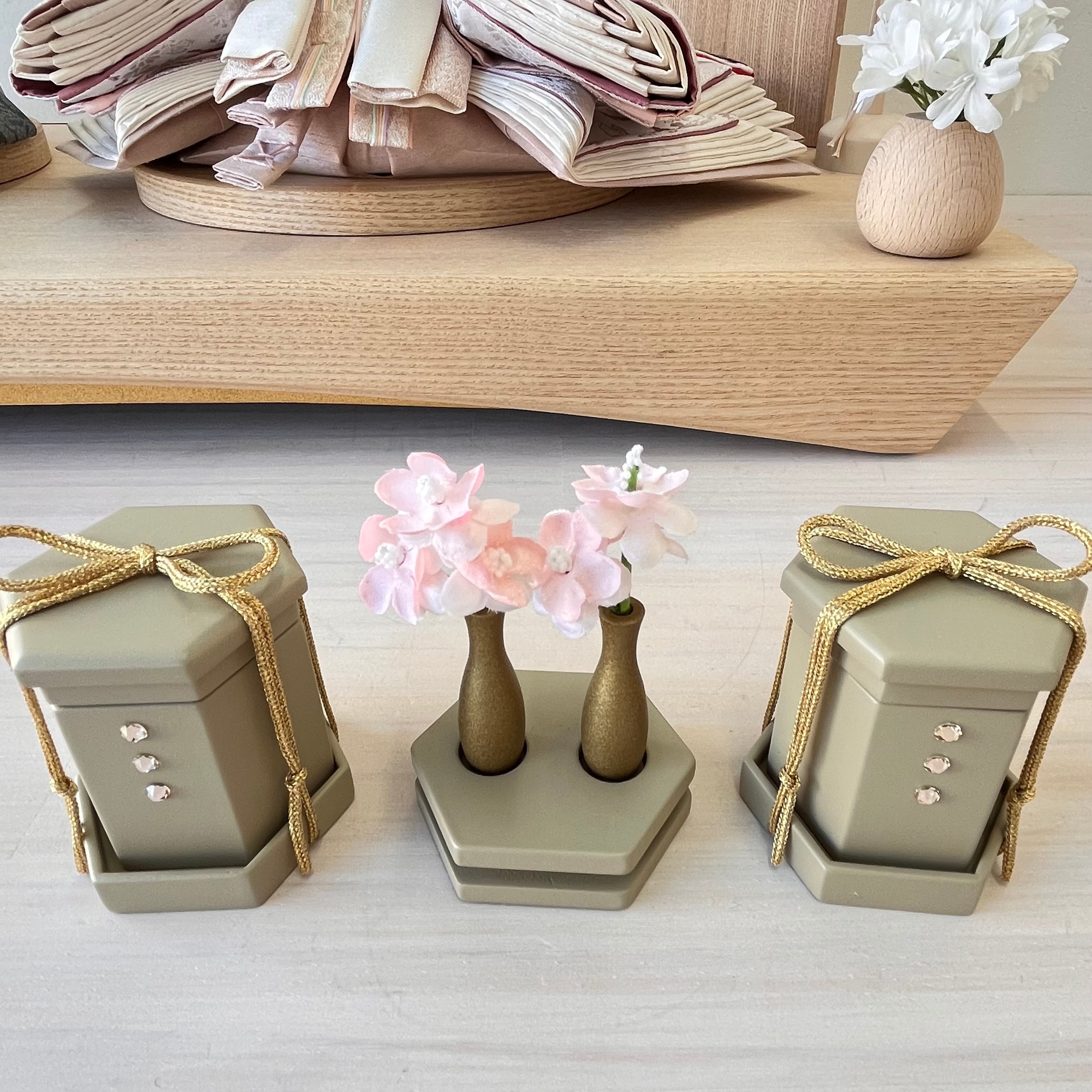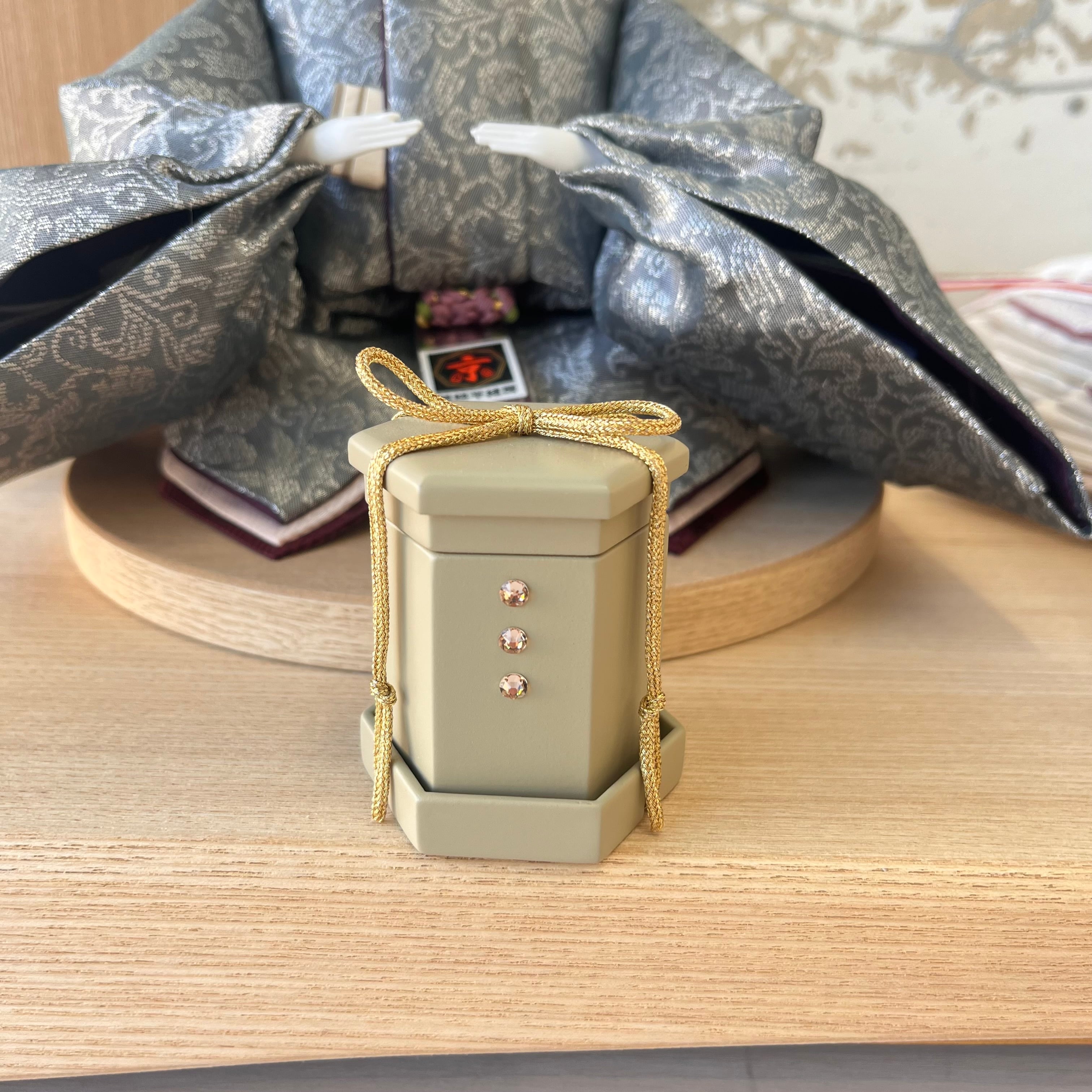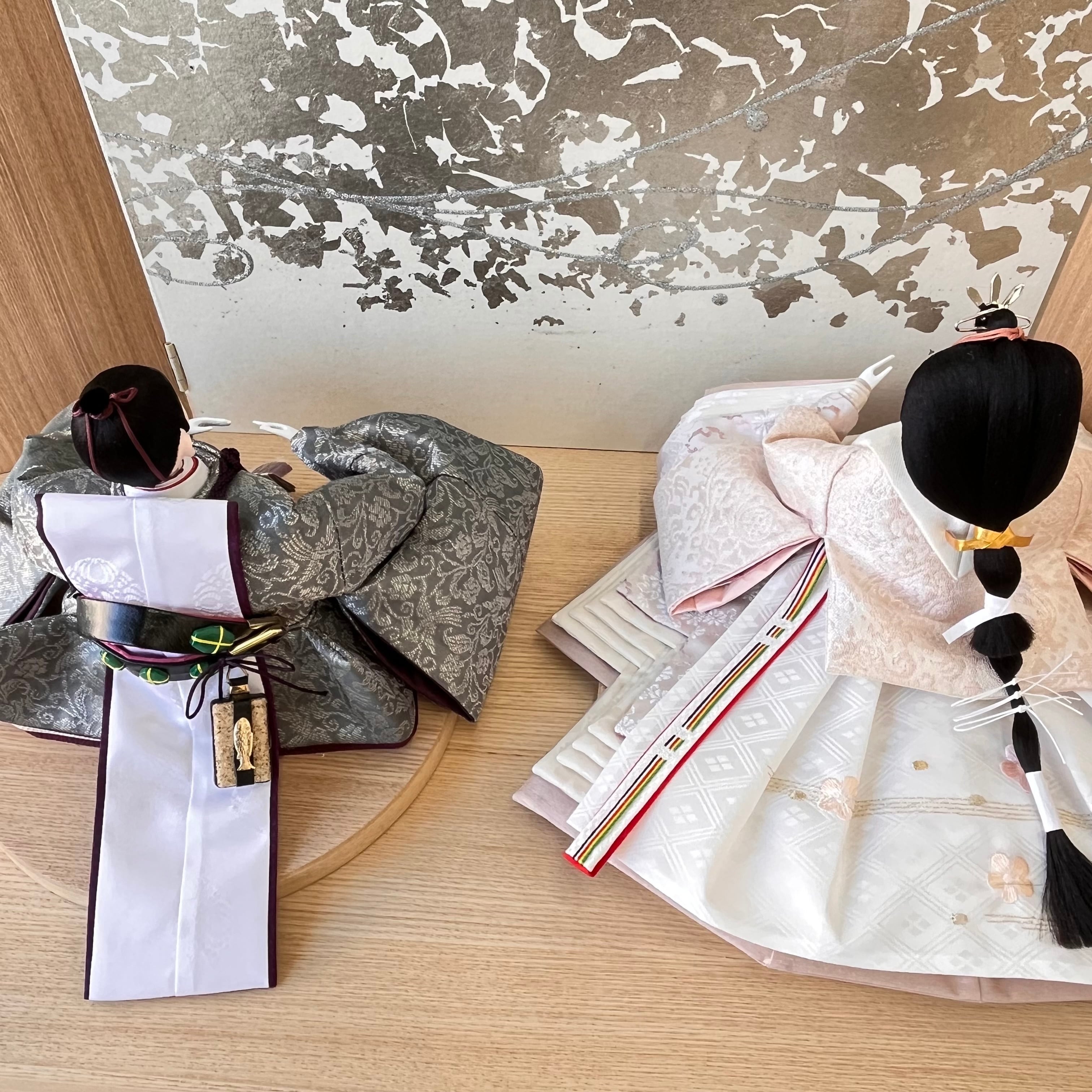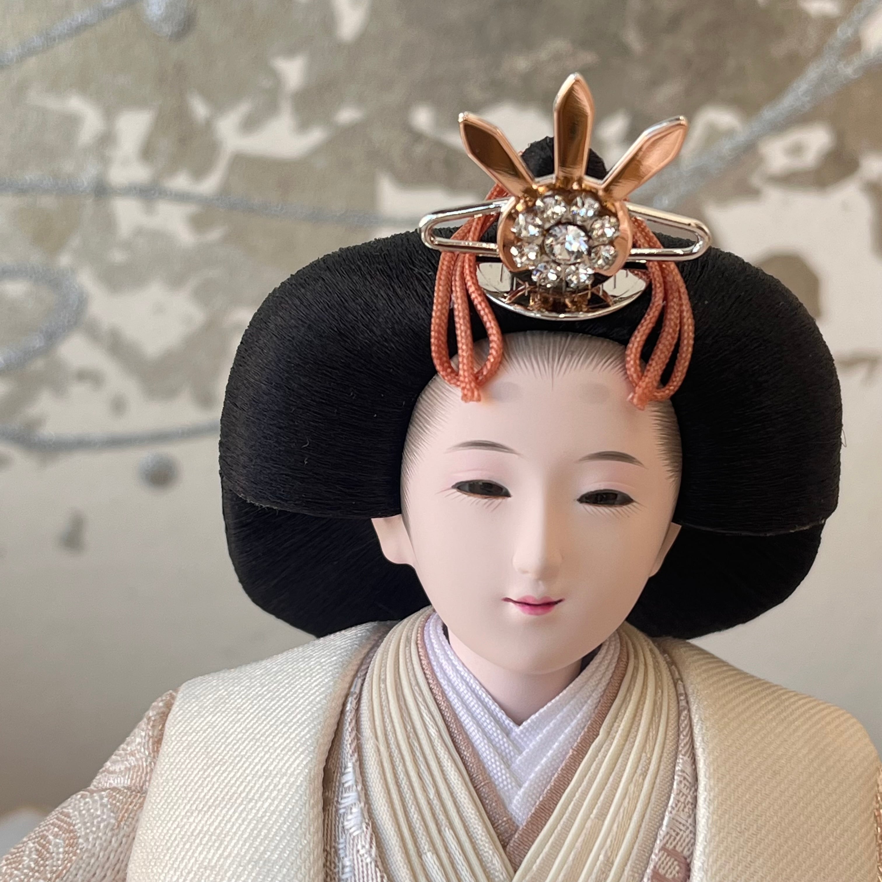 グレーと柔らかなピンクの色のコンビネーションが、シックで洗練された親王になりました。スタイリッシュなお顔とよく調和します。