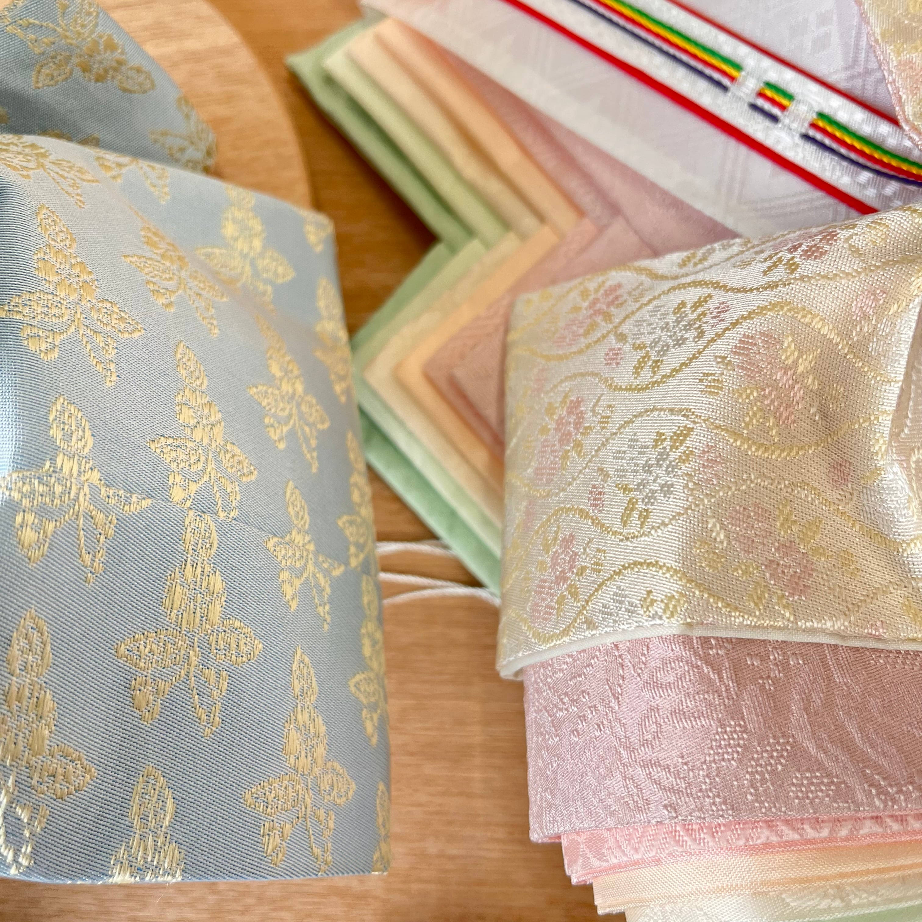 絹糸の発色の美しさは優しい水色と