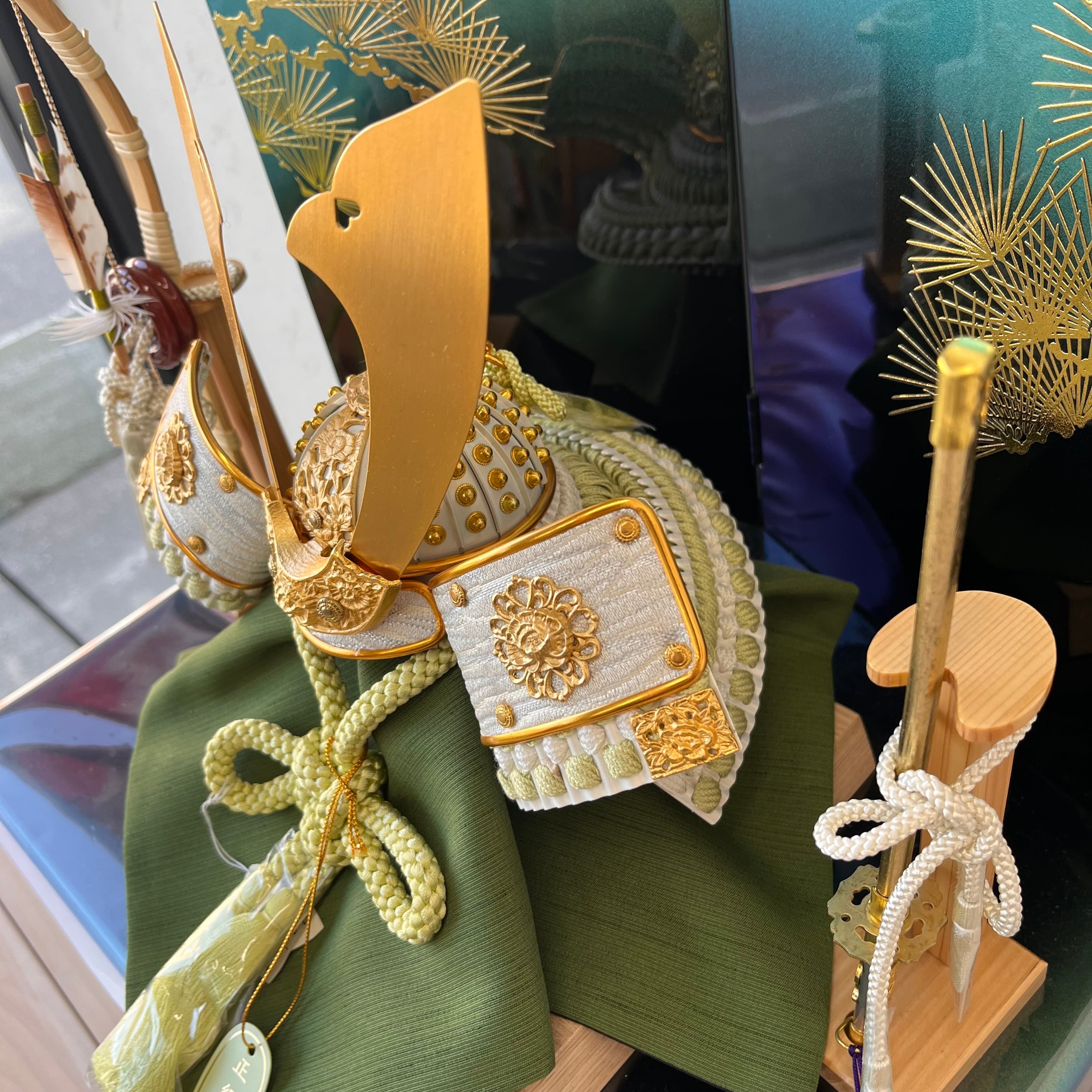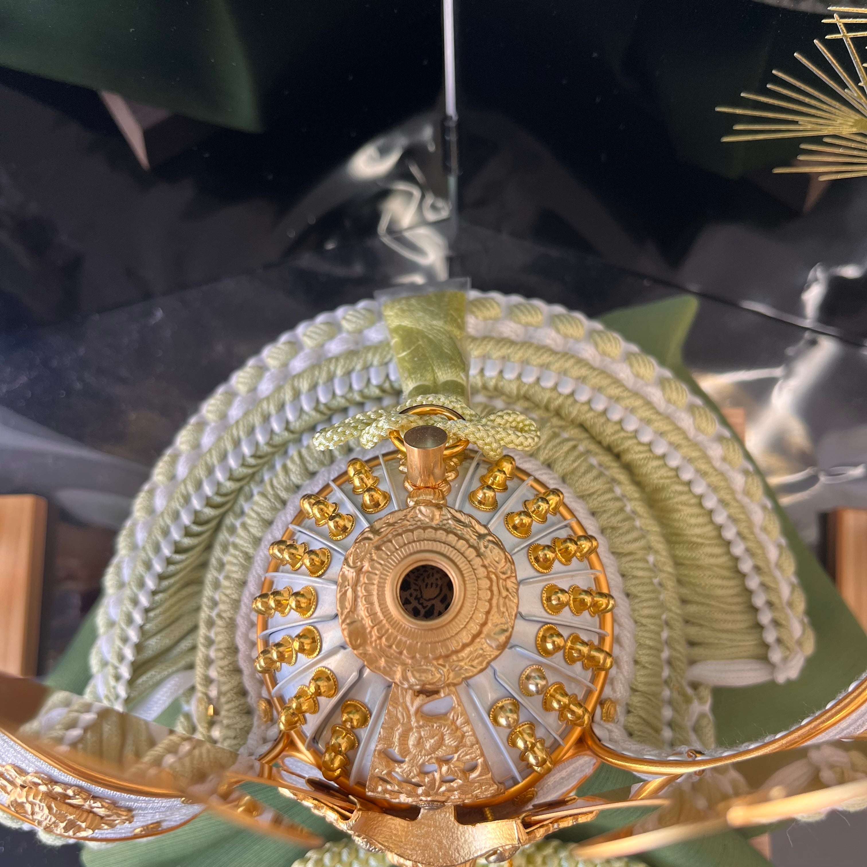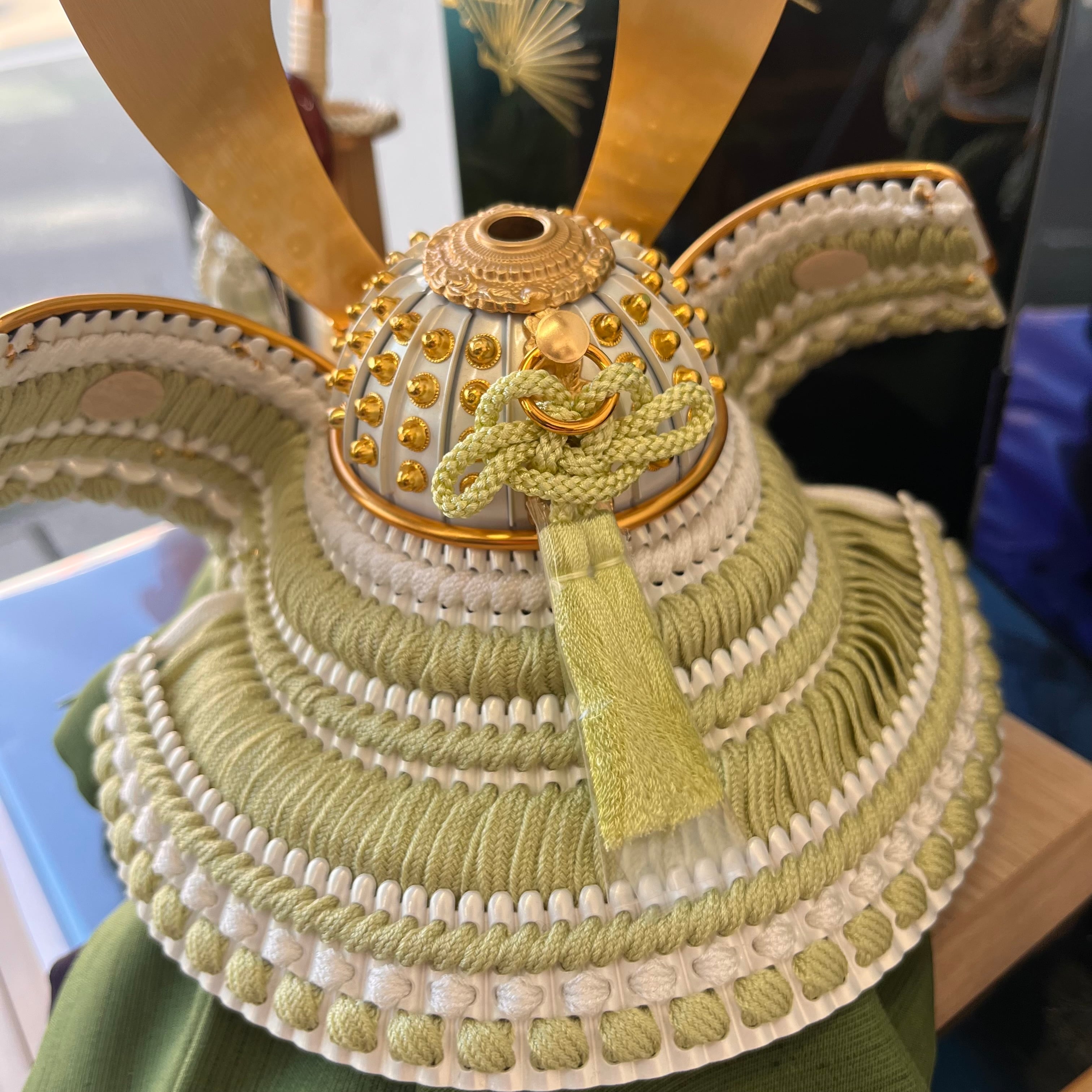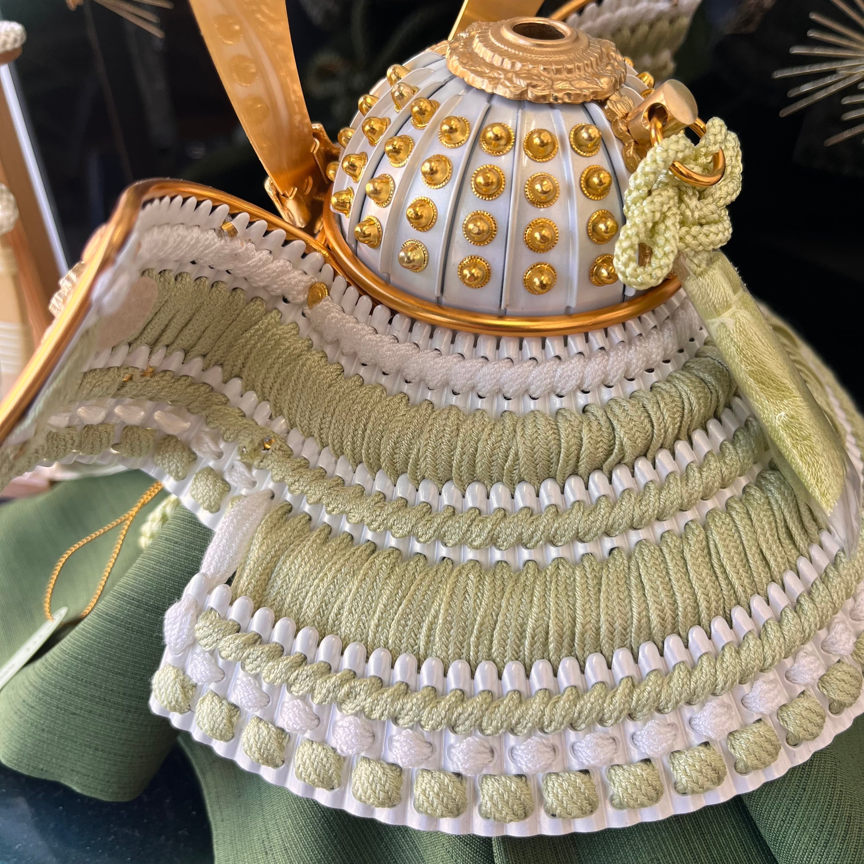 淡いグリーンの正絹縅糸が全体に柔らかな印象を与えます。