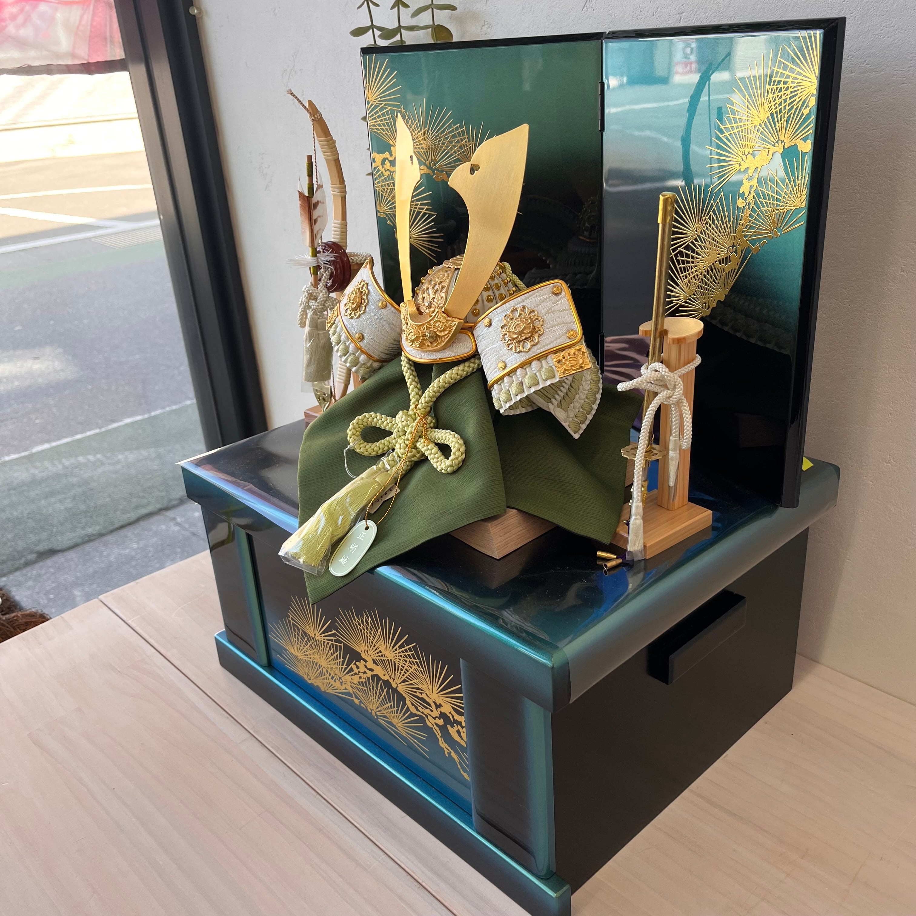 深緑の収納飾りは、