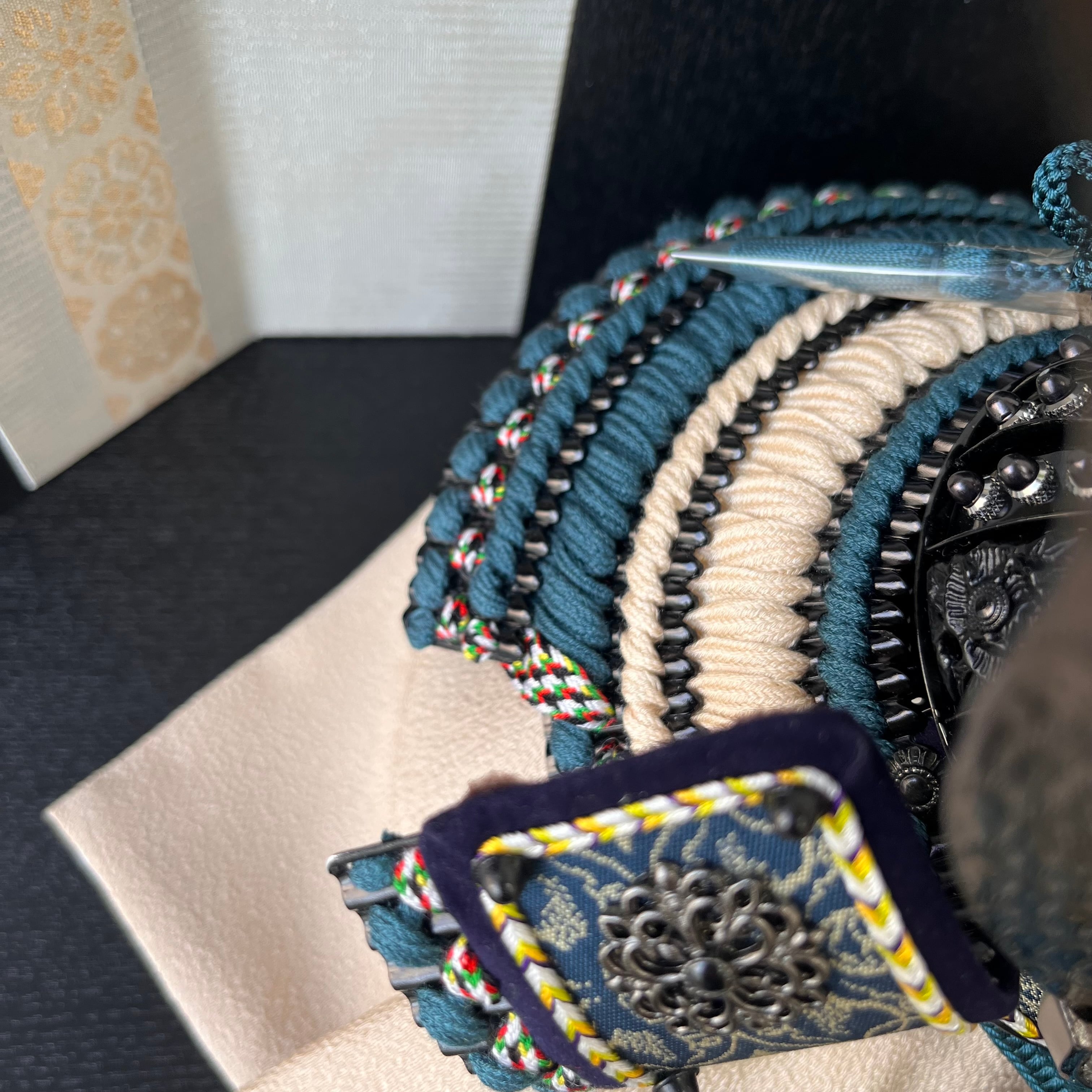 細かい小札にに職人が丁寧に編み上げます。