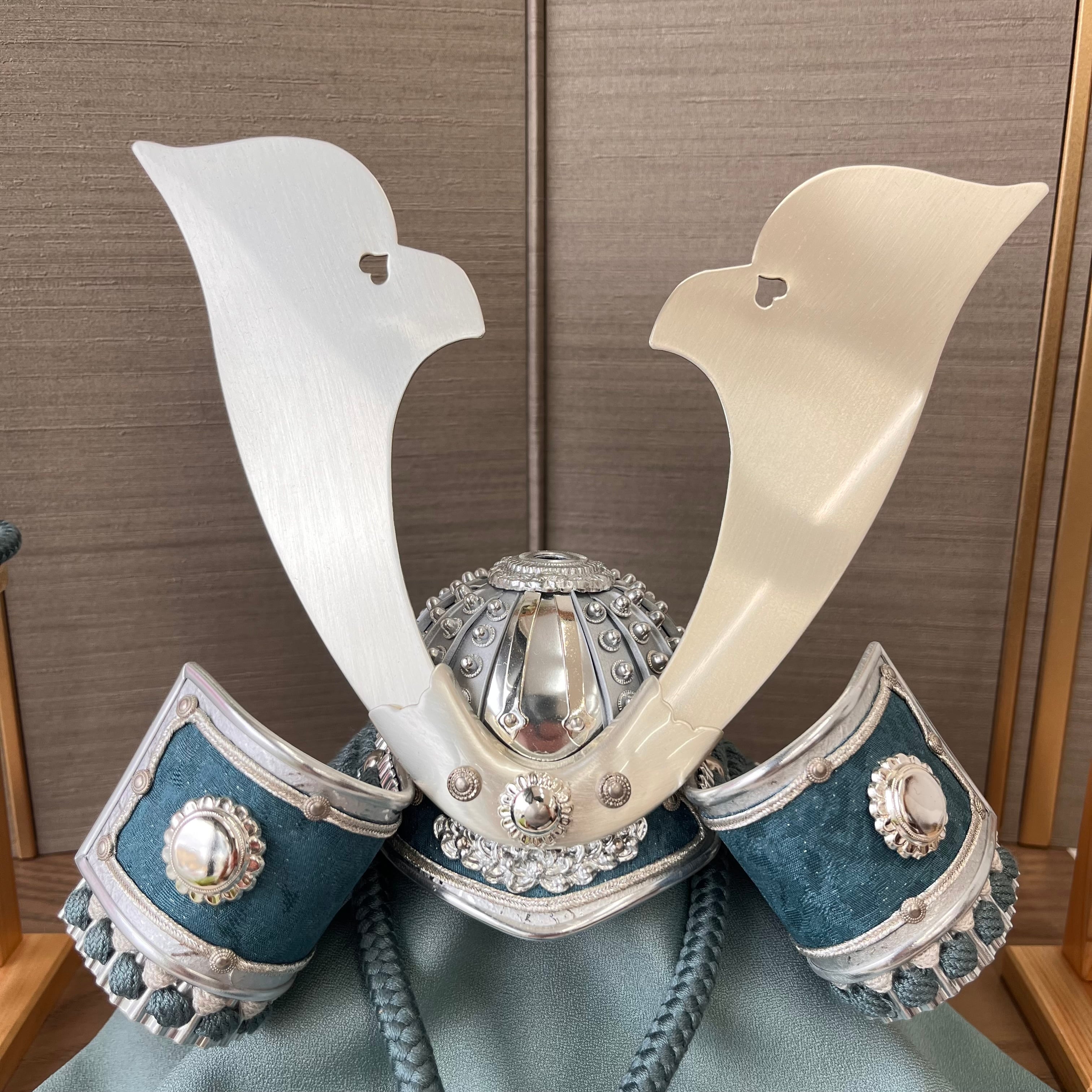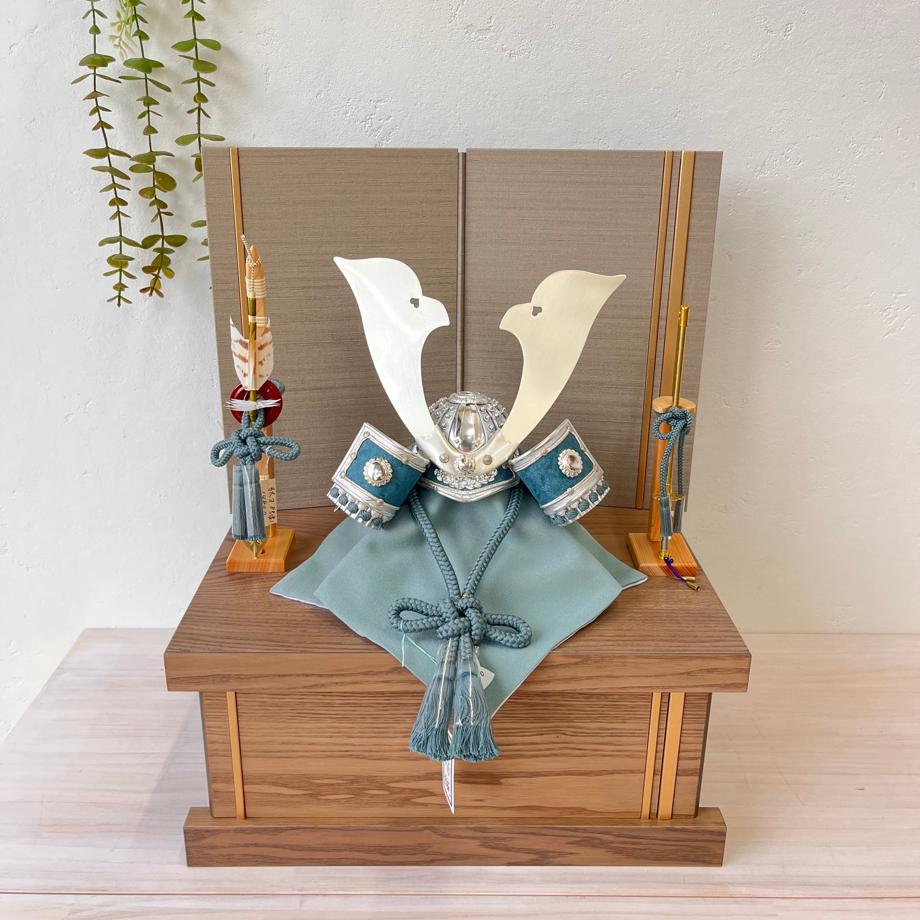 飾る場所を選ばず、どんなインテリアにもマッチします。飾りやすさと仕舞いやすさを兼ね備えた兜飾りになります。
