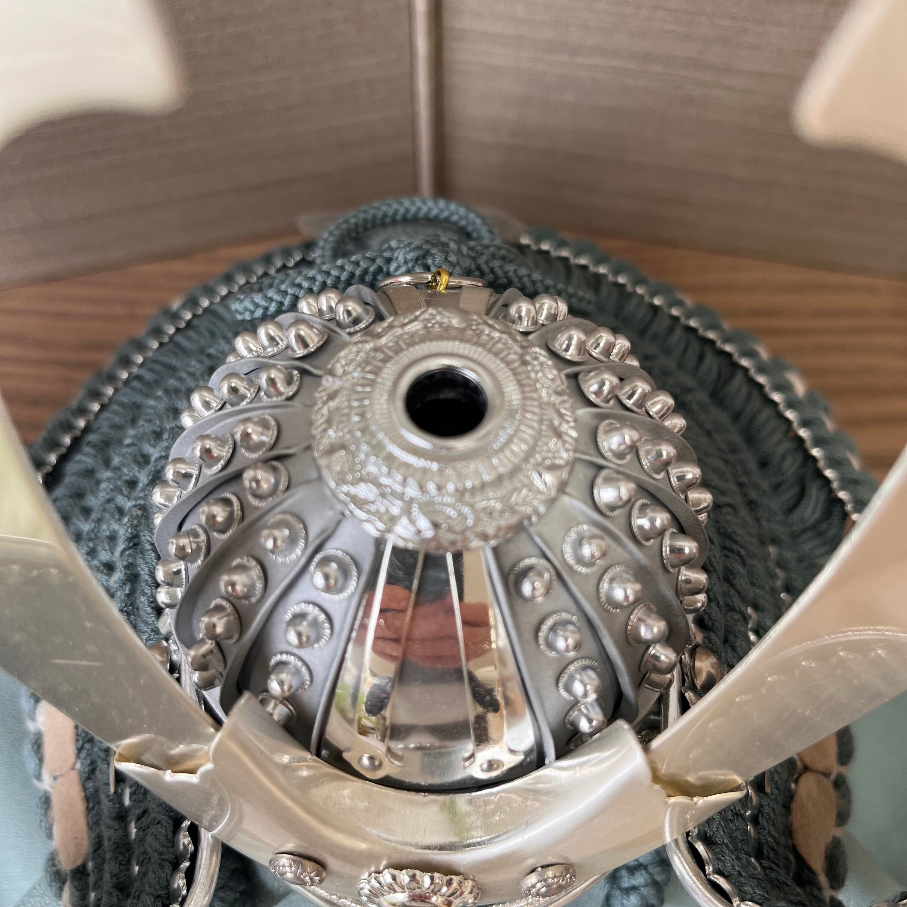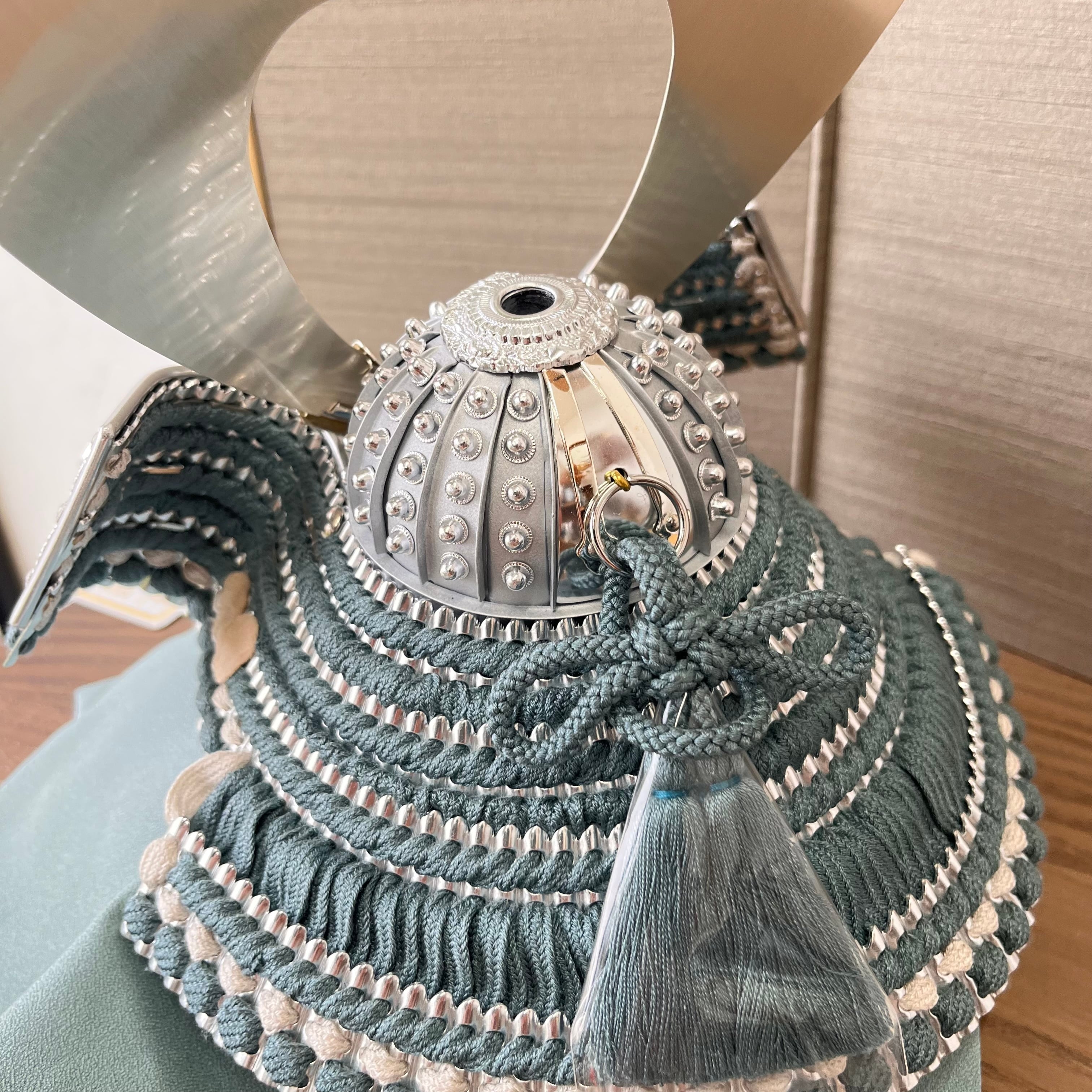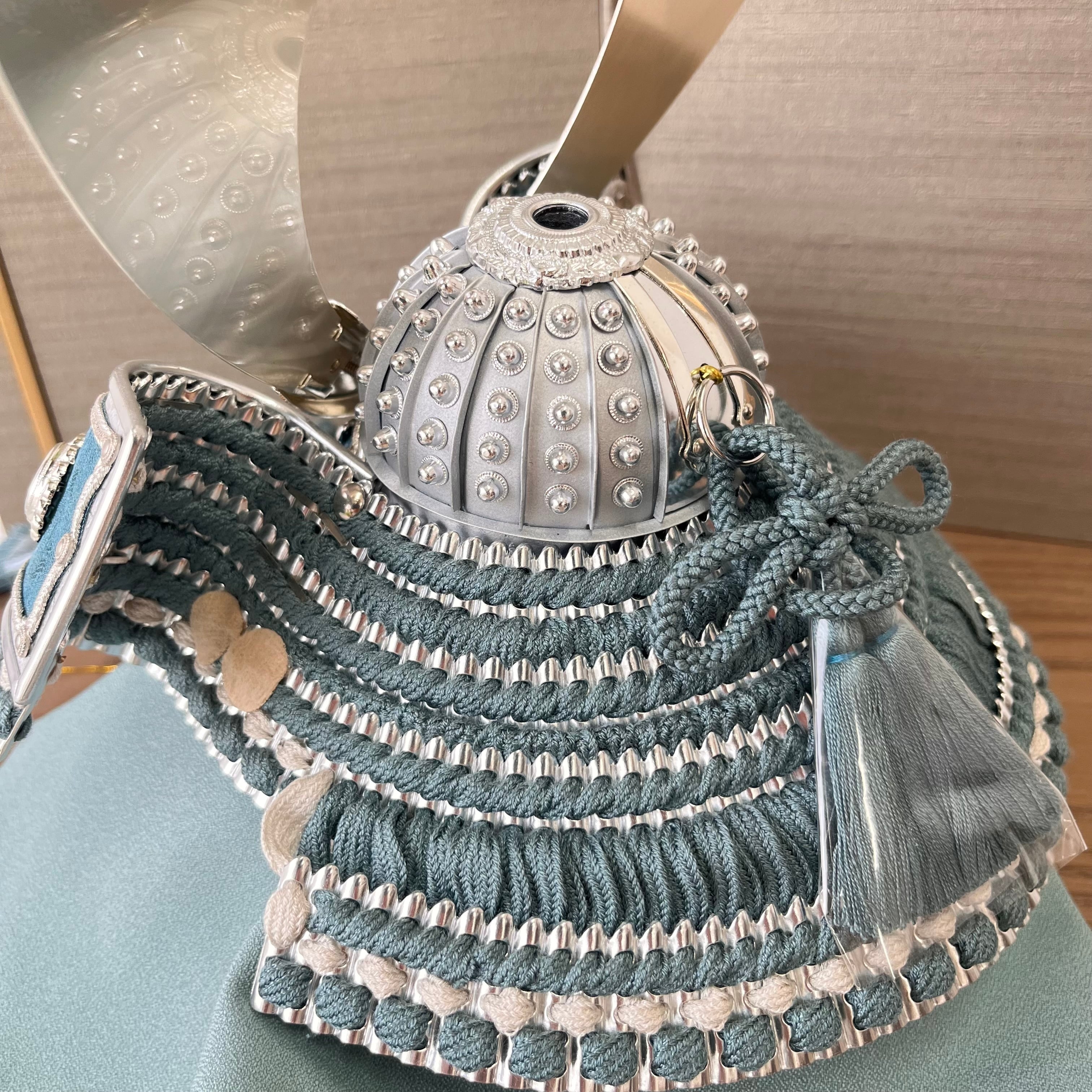 京染めの正絹組紐と正絹縅糸で仕上げた兜は