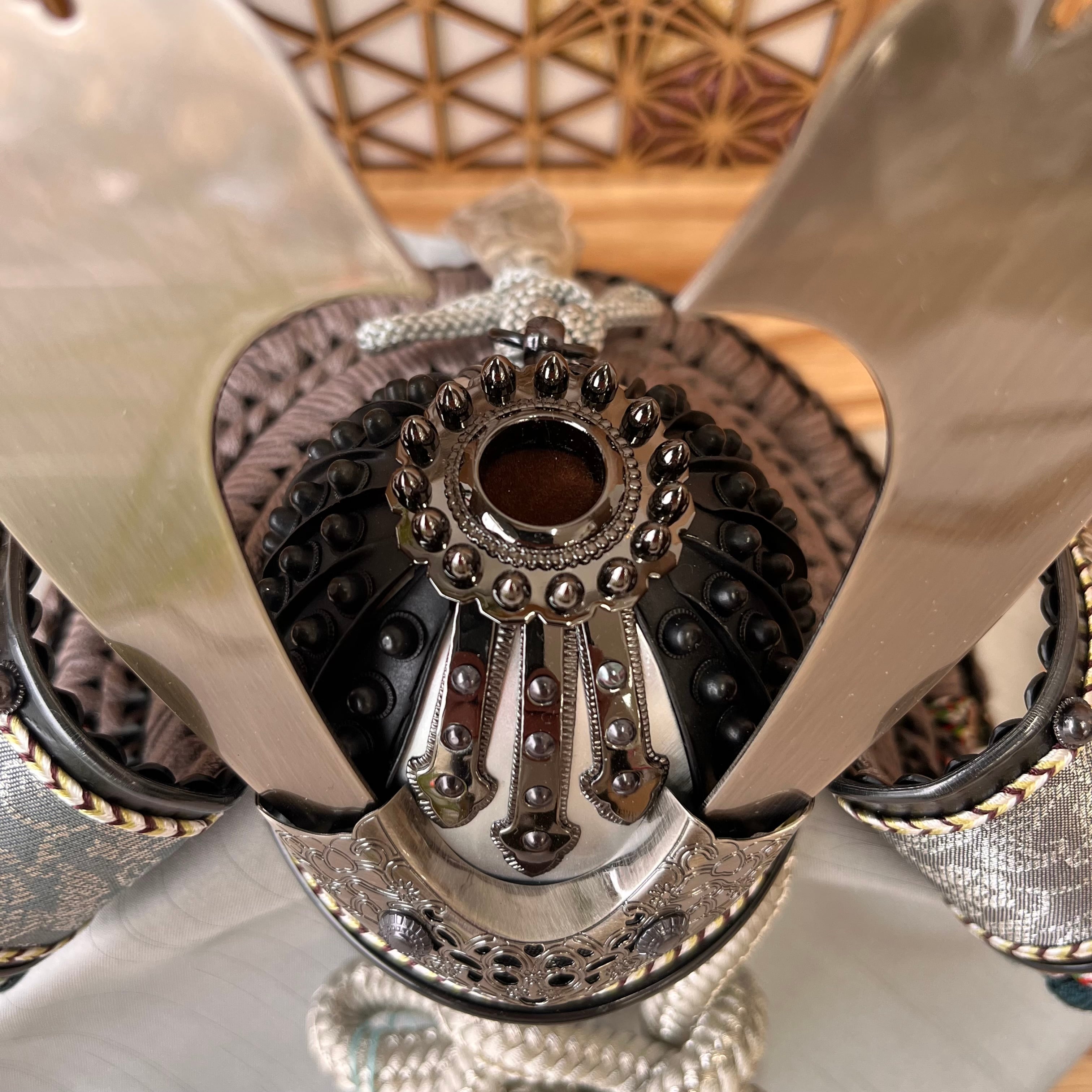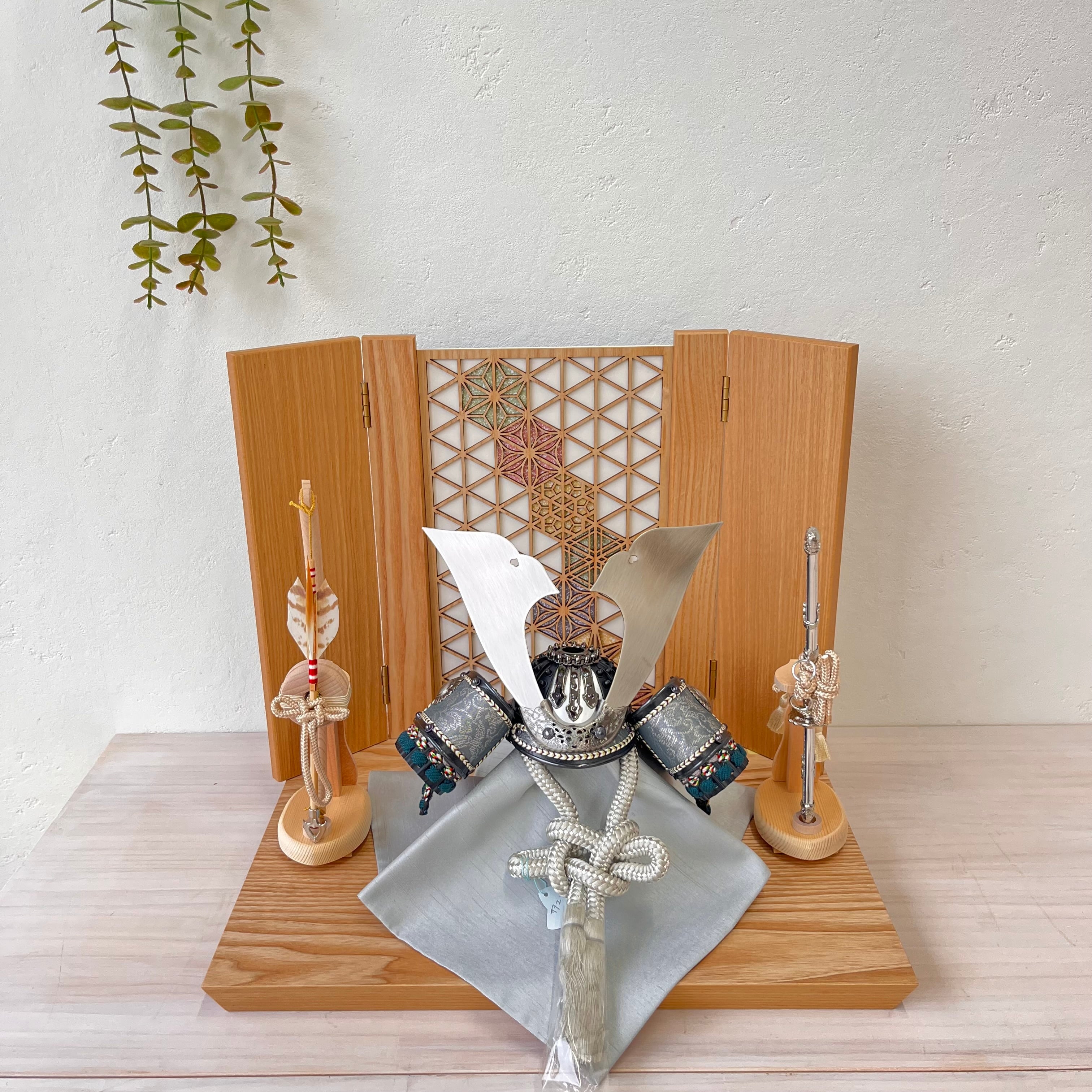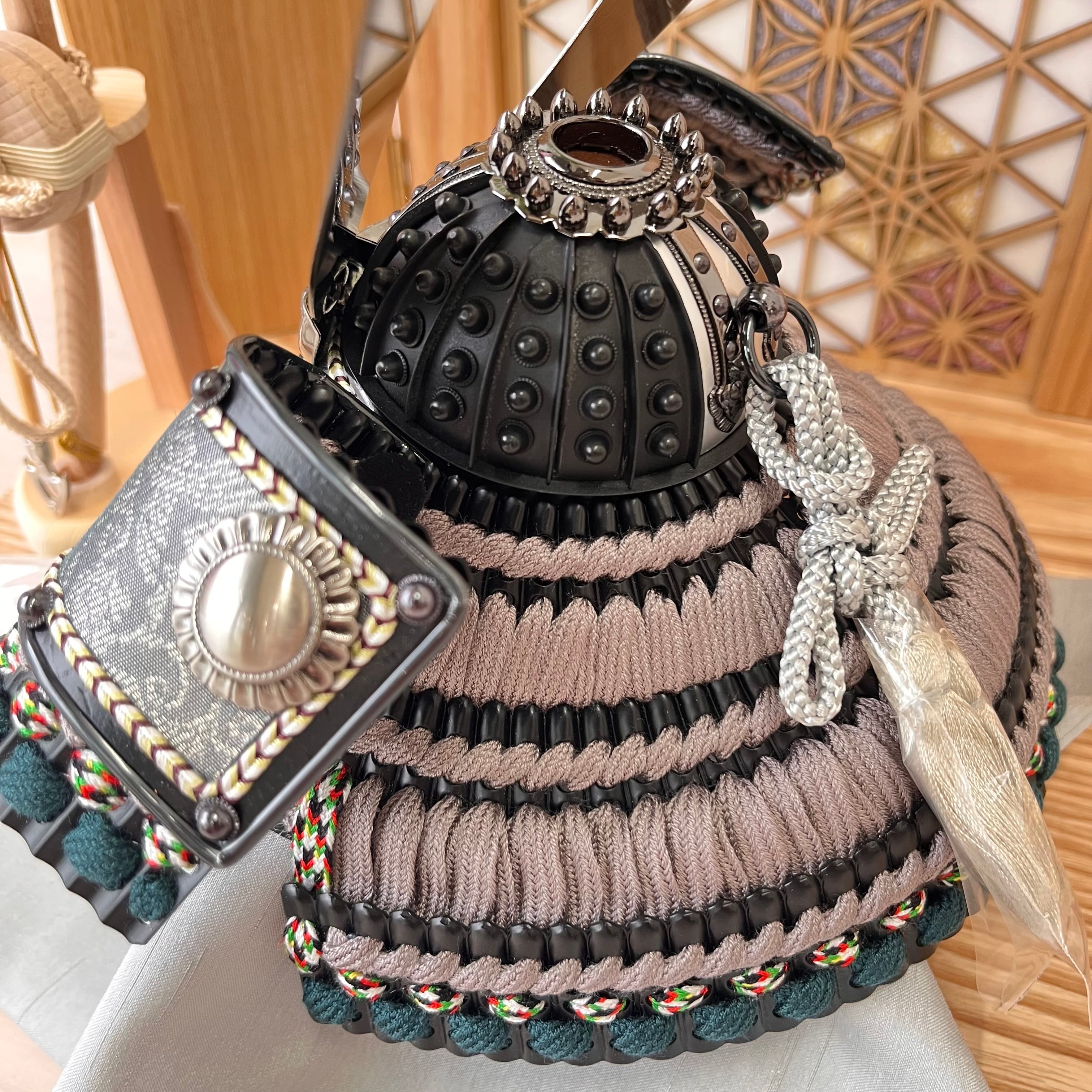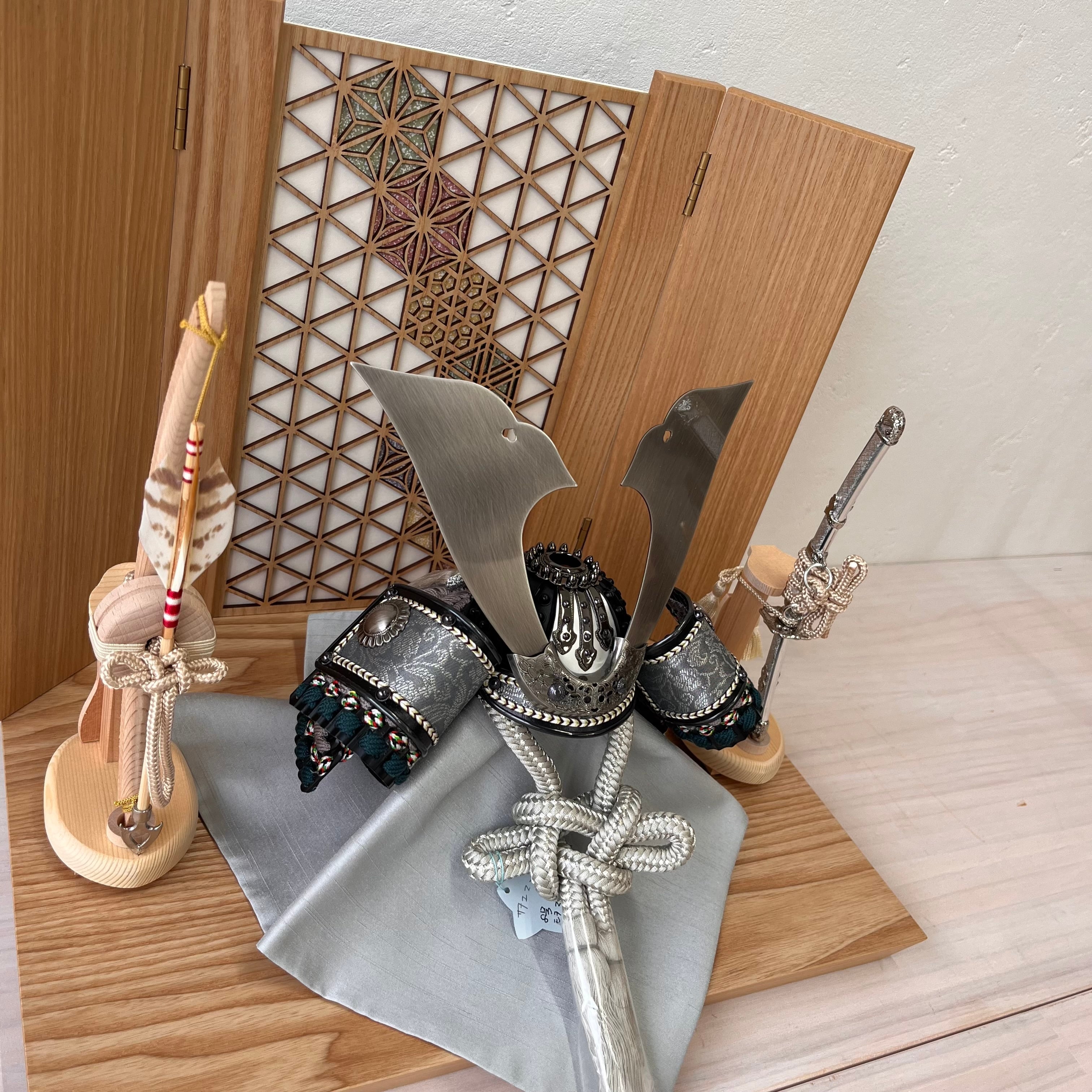 ## 商品名:匠 8号 黒小札グレー縅糸 麻の葉飾り台